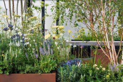 Creepers supplied all the Taxus baccata hedging and most of the shrubs and perennials for this show garden. The palette of soft & structural plants supplied by Creeper was chosen to be suitable for the spring and includes spring bulbs and woodland plants, with blues, whites, and pale yellows in the colour palette.