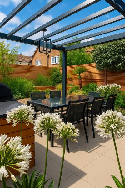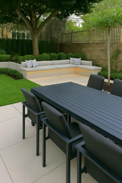 The combination of high-quality hard landscaping, thoughtful planting, and functional features transforms this garden into a versatile outdoor room — ideal for entertaining, cooking, and enjoying peaceful evenings.