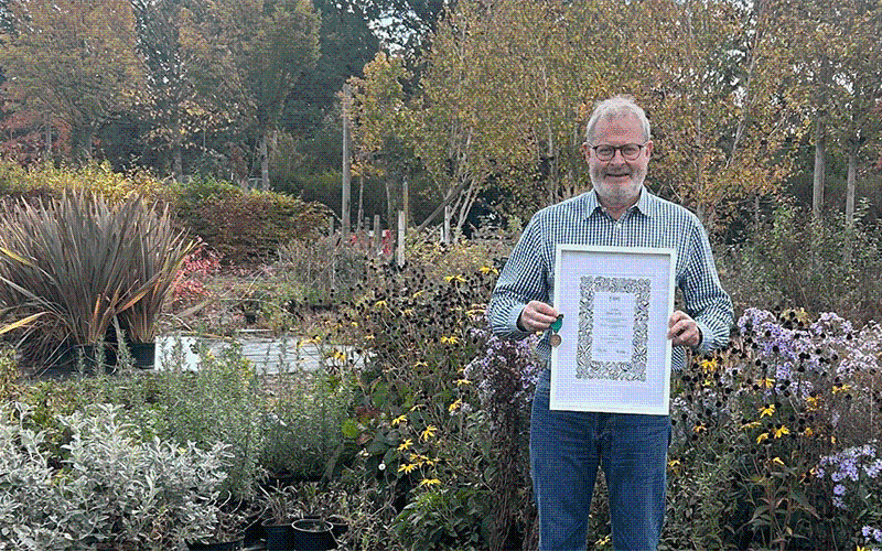 Soft Landscape Specialist Peter Bassett receives RHS 40 Years Service Award for his contribution to Horticulture and Landscape Sector